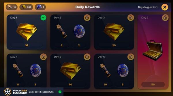 10、持续领取免费资源能让你的发展更轻松。每日奖励提供金币、礼包和增益效果。目标会引导你完成训练或赢得比赛等有用操作,同时提供奖励货币。即使没有时间玩比赛,每天登录也能确保稳步发展。到第7天,你可以收集高价值奖励,显著帮助你的球队。