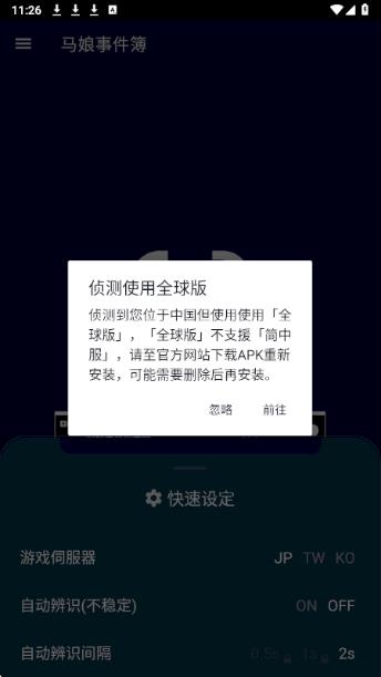 3、【选择】使用本软件前,需要选择对应的赛马少女客户端版本、日服、国服、台服等。