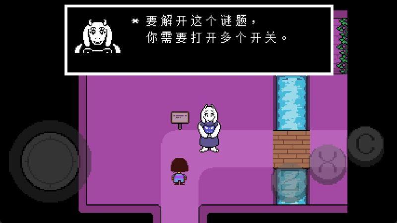 5、进入到第一个存档点北面的房间,Toriel会亲自把这个房间的谜题给解决,所以直接穿过北面的门即可。