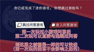 黑猴子棒球2游戏2026最新版攻略-新手教程1、第一次玩过小游戏问答后,第二次玩可以直接勾选跳过问答。到这里之前都是一样的,可以快进(第—次玩的回答不会影响之后的)。