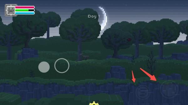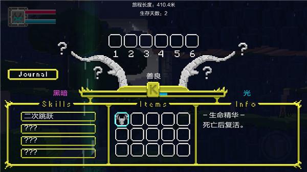 1、游戏开始点左侧山上有复活石,学习二次跳跃后蹦上去吃,点击红条左侧经验框调出物品栏,拖动2个复活石到使用栏,退出物品栏,选中复活石点击屏幕右侧透明图标使用。