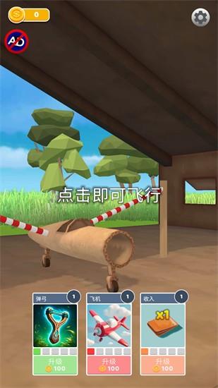 2、玩家点击屏幕,开始飞行,金币可以升级飞机和弹弓,让飞机飞的更远。