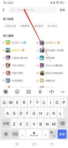 2、输入想要下载的游戏名字,点击右侧的搜索。