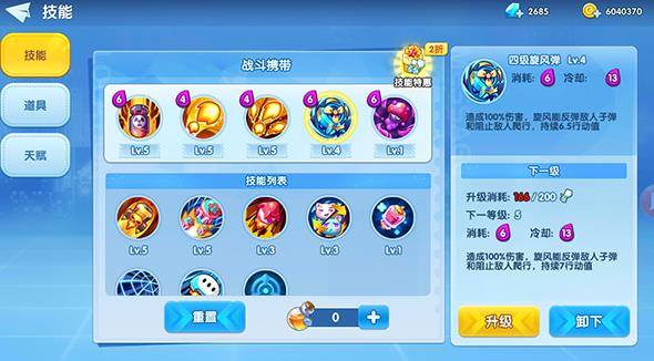 1、在发射弹下方一列,有道具栏放置着目前拥有的道具使用道具也是需要消耗能量的,而且道具使用不占用发射弹使用,同时使用道具以及发射弹能消耗更多的能量。例如:1级威力弹6点行动值 1级群体治疗3点行动值,可立刻消耗9点行动值,合理搭配使用可以更快消除技能冷却。