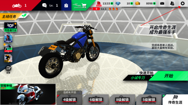 黎明飞驰游戏怎么切换操控方式?1、进入游戏首页,找到设置图标。