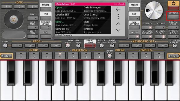 手机版电子琴游戏玩法1、下载安装后直接打开,进入首页界面,用户可以发现还是全英文的,点击界面的设置。