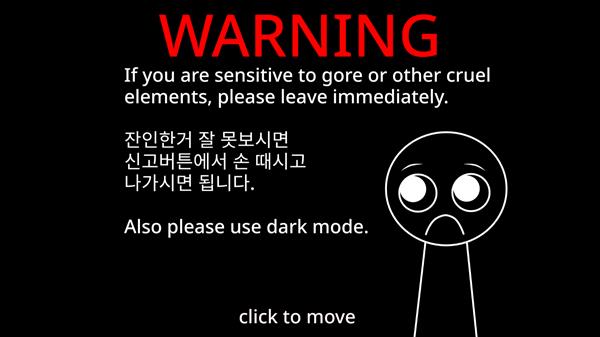 节奏盒子sprunki怎么玩1、在本站下载并打开游戏后进入主页,由于本作带有血腥恐怖元素,因此第一页是警示页面,心理承受弱的玩家谨慎游玩,如果做好准备了点击屏幕即可进入游玩。