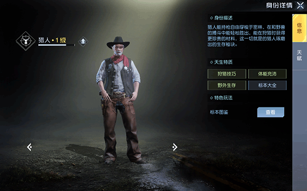 4、翻山越岭追捕猎物是猎人的必修课,狩猎时猎人的饱食度消耗会更少,再加上长年累月的练习狩猎技巧,还能让猎人提升获得狩猎时获得高级材料的几率。猎人专属的标本图鉴里,有超多的高颜值标本等你去解锁哟。