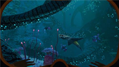 26、继续往深海迷航冰点之下西南方向游背景音乐会消失且光线越来越暗,恭喜你来到了地图边界,继续往下的话有惊喜等着你!我就不去了。我回到[玛格丽特基地],往北偏西北方向游,有个更深的洞可以下去【-11.0,-491.1,-707.4】,能看到逐渐多起来的紫水晶。此时音乐会变化,再往深处游会遇到本作的【死神利维坦】——【暗影利维坦】(叫声很恐怖,攻击性贼强,跟死神利维坦一样,只要听到它的叫声就说明定位你了,就会追着来咬你)。