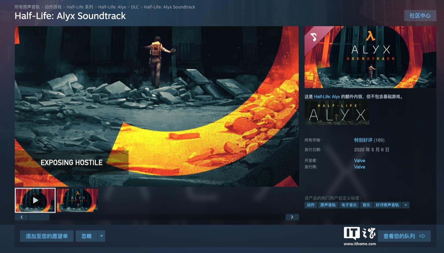 如果对实体收藏兴趣不大,玩家也可以在各大流媒体平台收听数字版原声带,或在 Steam 平台购买数字专辑,附专辑 Steam 商店地址(https://store.steampowered.com/app/1310460/HalfLife_Alyx_Soundtrack/)。