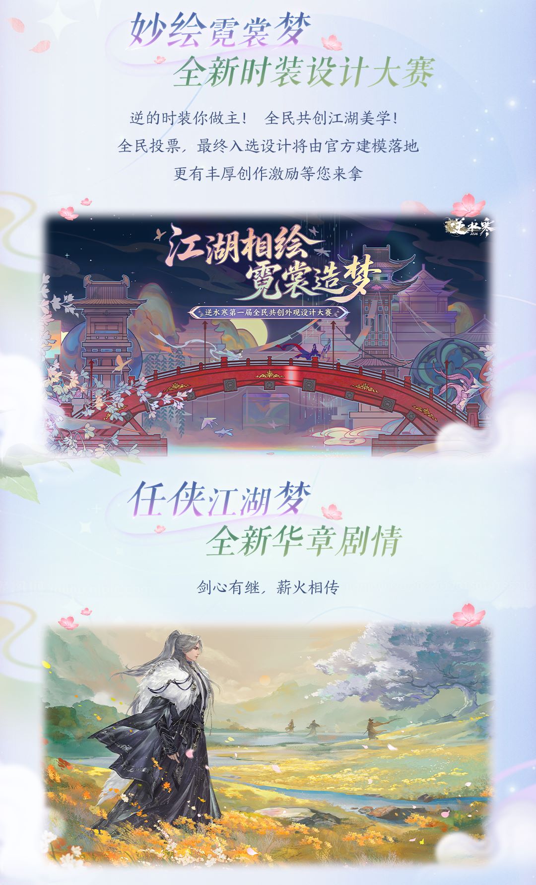 新版本中,寒棋杯 · 逆水侠棋官方赛 & 寒峰杯 · 首领竞速平台赛双赛全面打响,以及多项福利内容、外观配饰等。附官方介绍图如下: