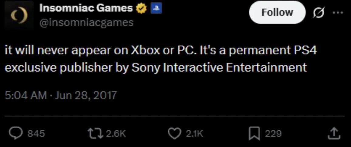 然而不到一年后,索尼让这款游戏登陆了 Xbox。