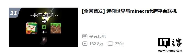 2月24日有个消息,B站上的UP主@是只耶吧在2月23日发布了一个视频,宣布首次成功实现《迷你世界》和《我的世界》的跨平台联机。这个成就让人惊叹。