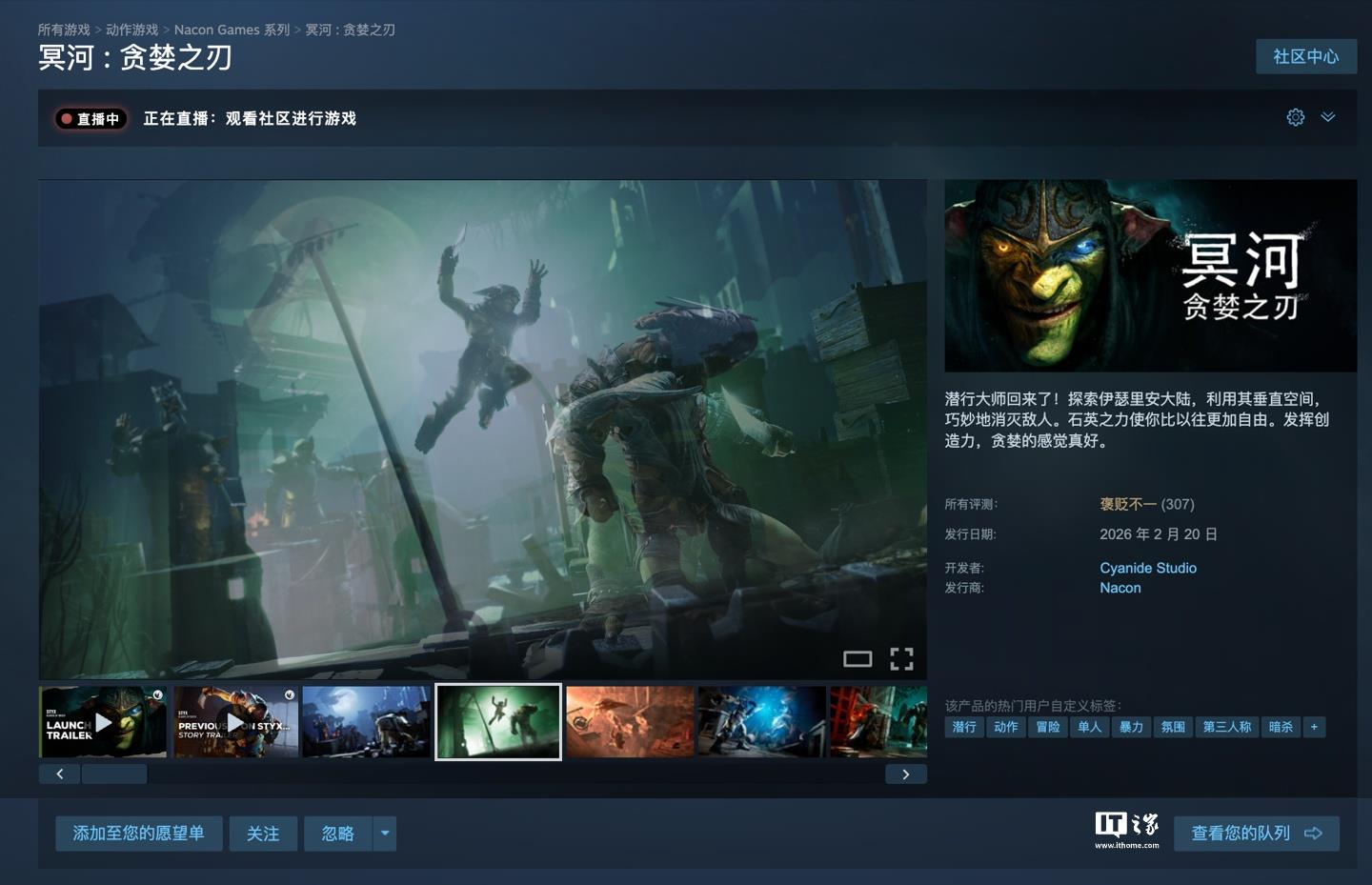 2月24日,Cyanide Studio宣布,他们的游戏《冥河:贪婪之刃(Styx: Blades of Greed)》已经正式上线了,现在大家可以在PlayStation 5、Xbox Series X/S和PC上玩到这款游戏,Steam国区的起售价是136元。