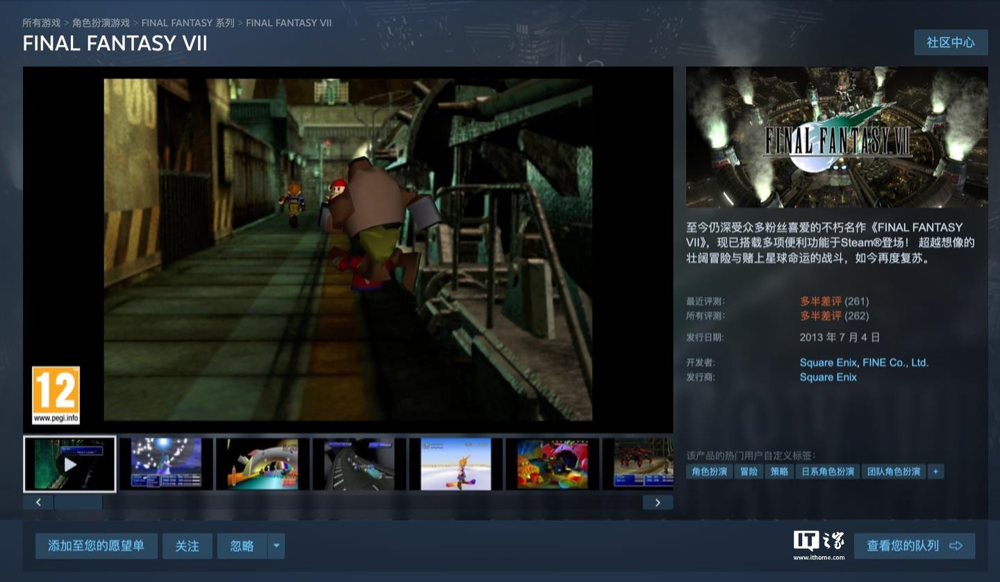 2月25日消息,Square Enix在Steam和GOG平台推出新版《最终幻想7》,Steam国区售价40元。已经拥有《最终幻想7-2013版》的玩家可以免费升级到这个新版本,目前2013版已经停售。