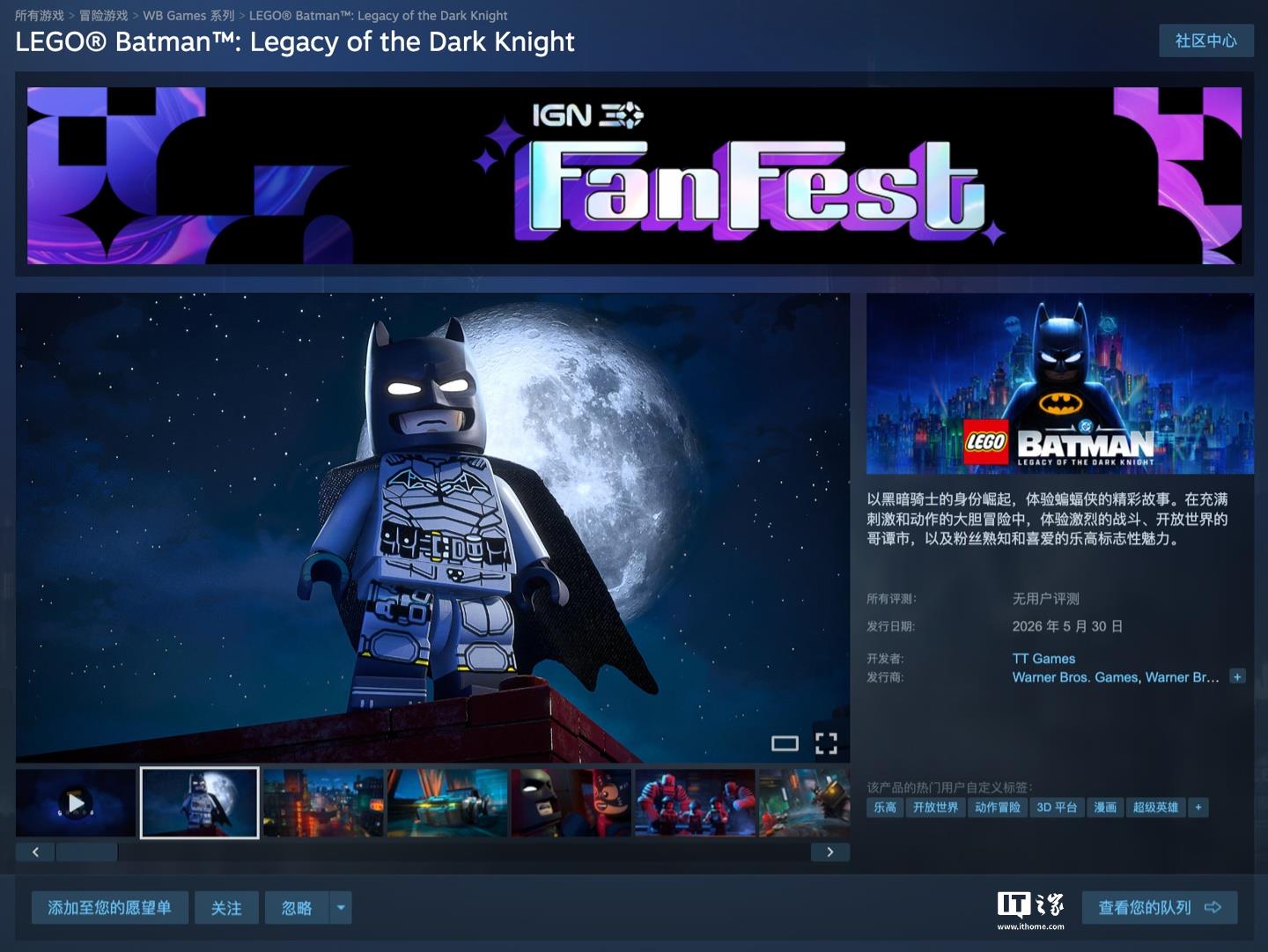 2月26日,开发商TT Games宣布,他们的新作《乐高蝙蝠侠:黑暗骑士之遗》将在5月30日上线,登陆PS5、Xbox Series X|S、Nintendo Switch 2和PC(Steam / Epic),游戏的宣传视频也已经发布。Steam国区的售价从428元起。