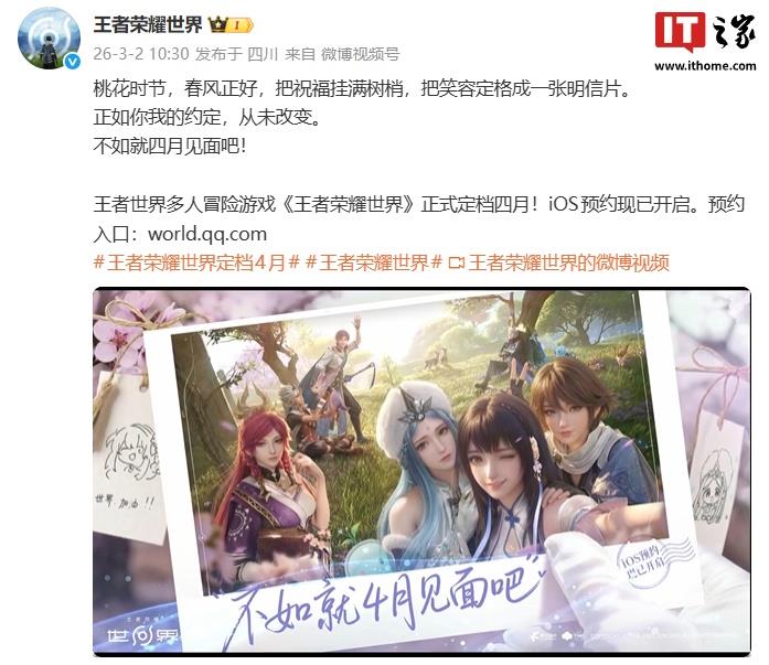 3月2日,腾讯宣布《王者荣耀世界》多人冒险游戏将在四月上线,现在苹果iOS端已经可以预约了。