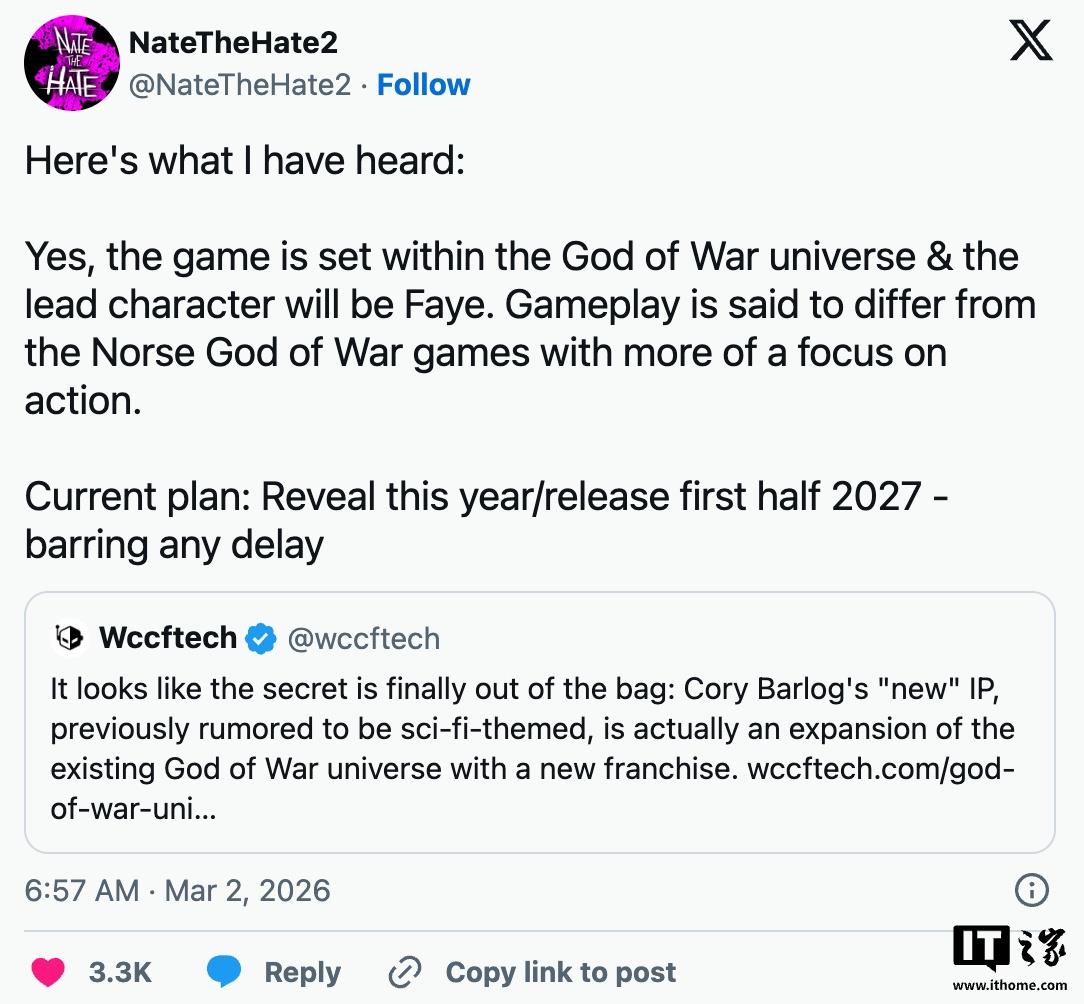 3月3日,有消息透露,索尼正在制作《战神》系列的新作,这一次主角将由奎托斯的妻子劳菲担任。据称,这部作品有望在今年正式宣布,并计划在2027年上半年推出。