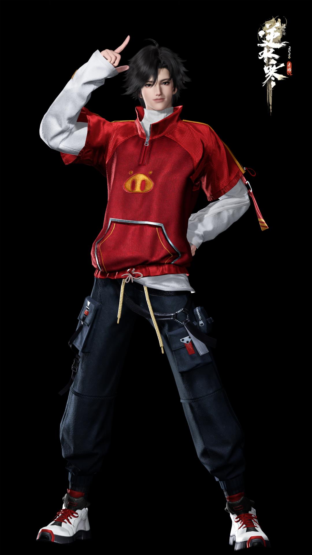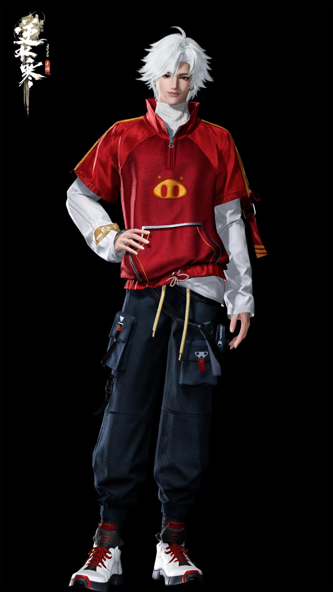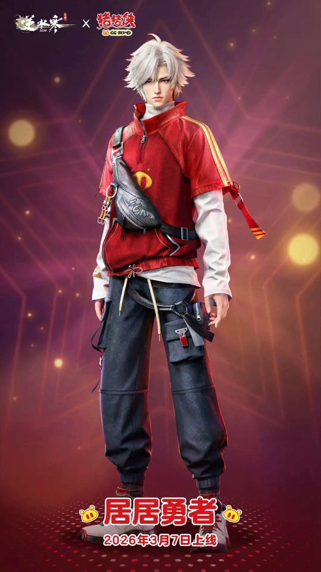 猪猪侠主题时装【居居勇者】融入了猪猪侠众多经典元素,例如红色护目镜,猪猪图案卫衣,下身搭配多口袋工装裤与高帮运动鞋,再配上黑色潮酷的斜挎包。