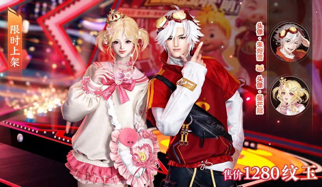 3 月 7 日起,猪猪侠 / 菲菲公主印象时装【居居勇者 / 菲菲甜心】限时直售 1280 纹玉,附赠配饰【灿晶目镜 / 星珠皇冠】,可使用半价券、代金券与限定纹玉,可支持发型与时装拆分搭配、染色等功能。