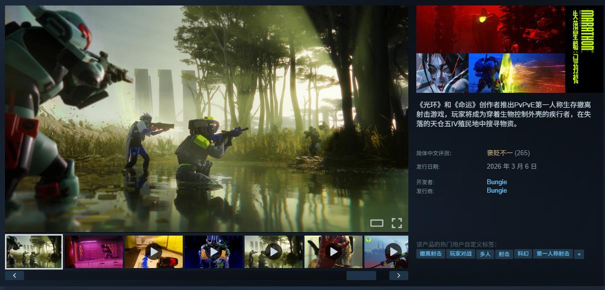 3月6日消息,Bungie制作的《失落星船:马拉松》今天正式上线,支持PC、PS5和Xbox Series X|S平台,Steam国区售价从168元起。