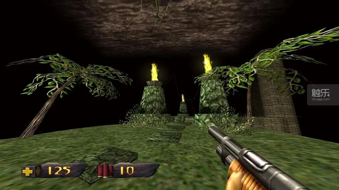 至于复刻版,开发者在升级原版游戏的画面时也得格外谨慎。在《恐龙猎人》复刻版开发期间,Nightdive 没费多大工夫就清除了原作里的迷雾,却遇到了一些意料之外的问题。“我们刚刚清除迷雾,就发现树梢不见了。”基克透露,“他们(《恐龙猎人》开发团队)根本没有在被迷雾遮住的地方添加任何多边形。”更糟的是,由于迷雾消失,玩家能够看到远处的恐龙,游戏的挑战性大幅降低…… 为了弥补这块短板,Nightdive 不得不对《恐龙猎人》复刻版的内容做出调整,为玩家提供了一个可以重新启用迷雾效果的选项。
