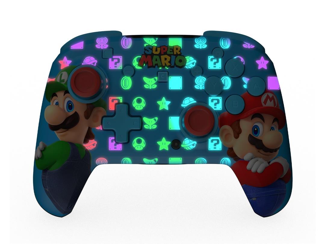 这款联名手柄的一大特色是其面盖下方隐藏着四种可调 ARGB 灯效系统,在暗色环境中用户可点亮该控制器,让马力欧 IP 中的经典图标进一步丰富游玩体验。