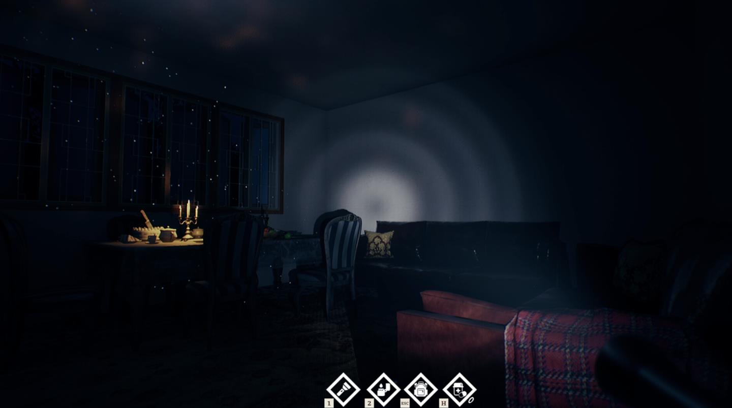 玩法方面,玩家将以第一人称视角进行探索,需要在阴暗的环境中仔细搜寻线索。游戏中可以使用手电筒或点燃蜡烛照亮周围环境,并在房屋内寻找解谜道具与关键提示。在探索过程中,玩家还可能遭遇恶鬼追逐等紧张桥段,为游戏增添强烈的恐怖氛围。