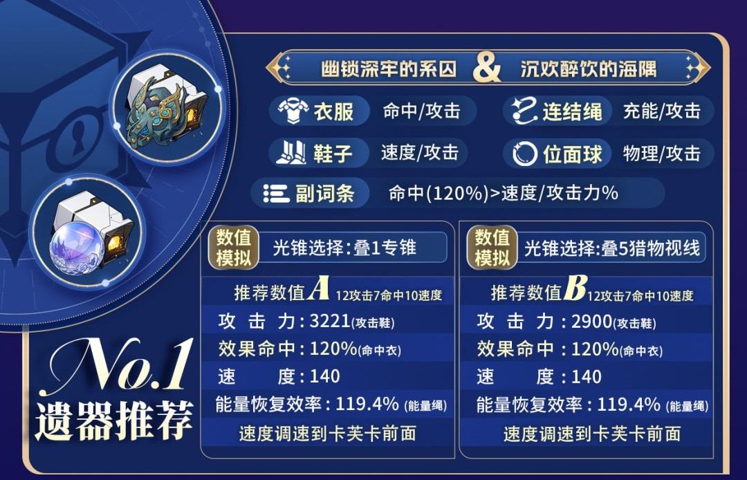 副词条:命中需要堆到120,攻击力最好在3600以上,速度在卡芙卡前面
