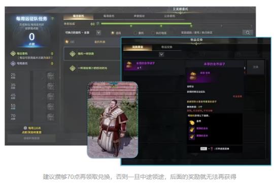 1、艾芙娜的信物:通过完成每日和每周任务获得【远征队任务点数】,达到一定数量后可以兑换成“艾芙娜证明”代币,再进行兑换获取金币。
