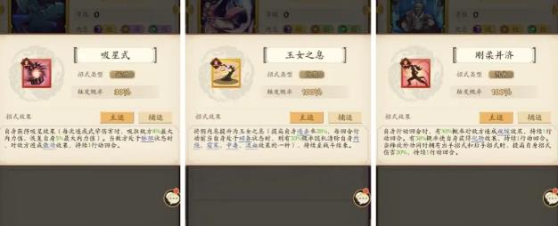 太极神功放辅运会导致触发破绽和化劲的概率降低一半,而且第二个效果也没有,但是这个结果对阴剑来说完全可以接受,因为阴剑根本不需要靠招式伤害。内功的自主招式以增加武学伤害,提升聚气为主。需要注意的是有些招式打在辅运内功上会降低效果,一定要看仔细了,有些重要的招式必须打在主运内功上效果才可以最大化发挥