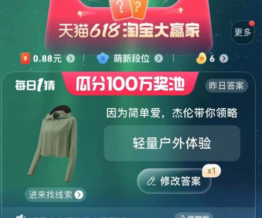 618淘宝活动又要开始了,每年这个时候,除了双11,这可是买东西最划算的机会。今年淘宝推出了“大赢家”活动,每天都有一个问题等你来答对,答对了就能拿奖励。这个活动吸引了不少朋友关注,毕竟大家都想知道每天的正确答案。下面我们来看看最新的淘宝大赢家每日答案吧!