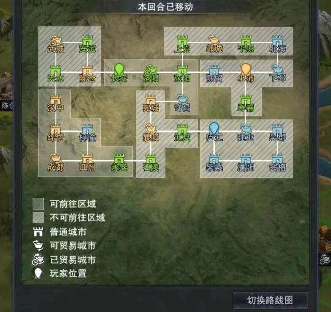 首先要了解,地图上的城市有8个贸易城市,路过就能产生收益,跑完完整的一轮,可以一次性获取大量收益,并且刷新第二轮贸易收入。谁先跑完一轮,谁就能在前期获得巨大的领先优势。所以说,前期最重要考虑的就是跑贸易而不是抢城市。关于跑商:之前经过的区域不能去。尽量优先走贸易点多的路线,终点尽量选择己方城市或中立城市不交路费。
