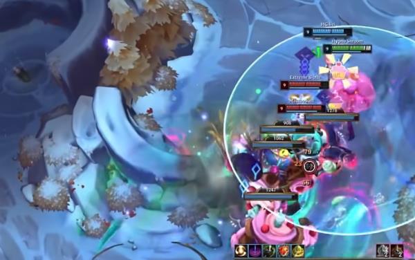 这个组合6级之前一定要苟住,6级后利用终极刷新配合上艾翁和安妮的大招,能够召唤出两个小菊两个提伯斯,开启正义的6V2模式;