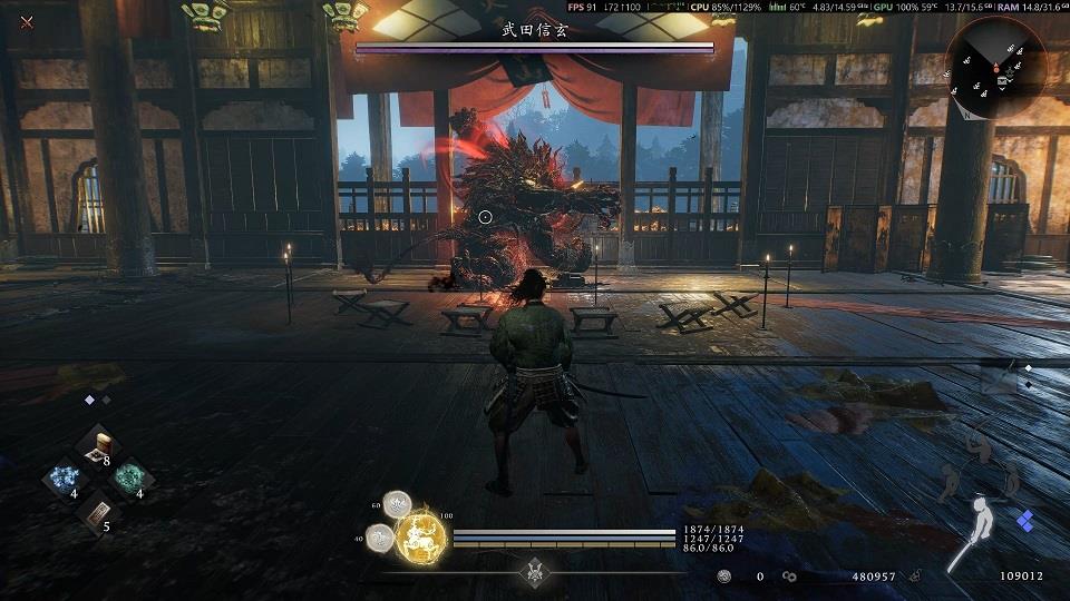 3.残心取消:武士刀攻击后精准触发“残心”状态,立即输入阴阳术指令。