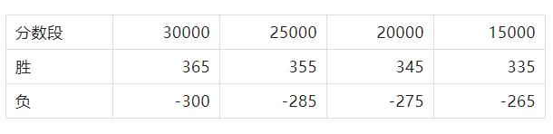 公段位不同分数段胜负加分情况: