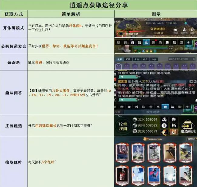 3、行侠仗义:各种类型的活动奖励,例如帮会货运帮助,乱入玩法。4、好友组队:好友组队通关副本也能获得逍遥点。