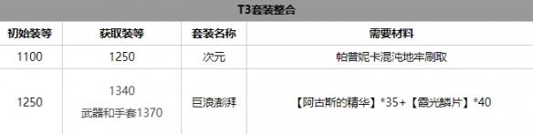 坚定意志套装效果为,三件套为增加暴击率与暴击伤害,六件套效果为在暴击时额外增加伤害,适合暴击率较高的输出职业。3、T3阶段巨浪澎湃套装
