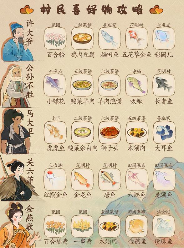 村民喜好物一览