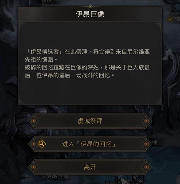 3.返回尼尔维亚地图入口左侧,对“伊昂巨像”进行虔诚祭拜,即可获得干瘪的种子。