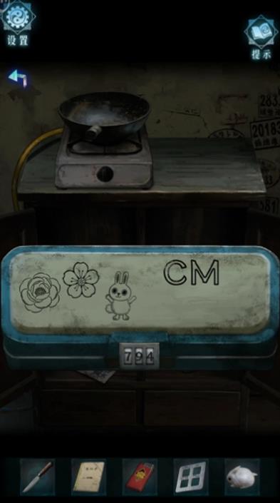 3.用直尺测量厕所墙贴花、窗户窗花、笔记本兔子图案,分别得7cm、9cm、4cm,在文具盒处输入“794”打开。