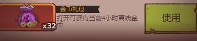 金币礼包可领取4小时离线收益,通过提升等级与道具可进一步增加获取量。