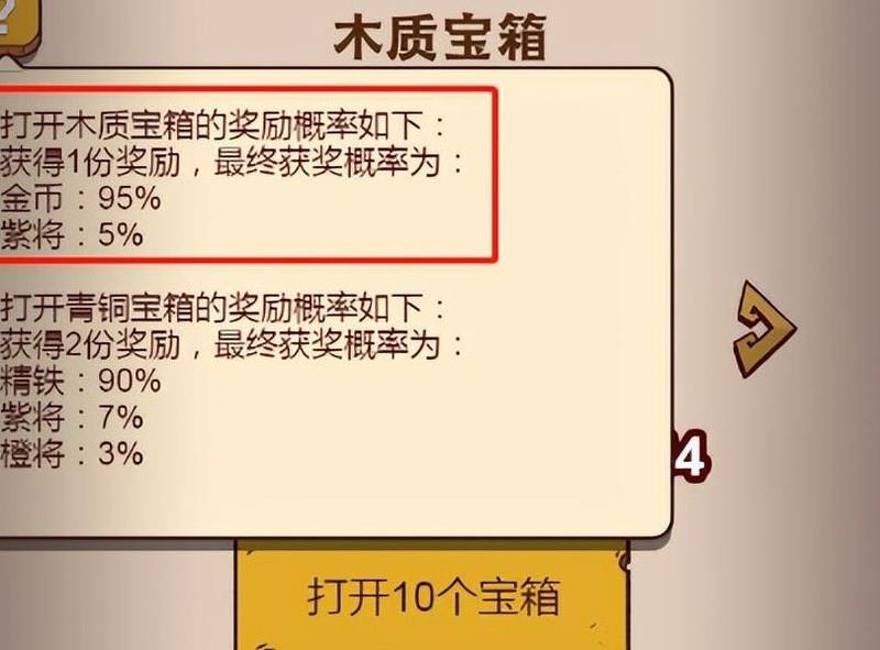 推图越远、VIP等级越高,木质宝箱奖励的金币越多,类似挂机机制,但建议每周统一开启更划算。
