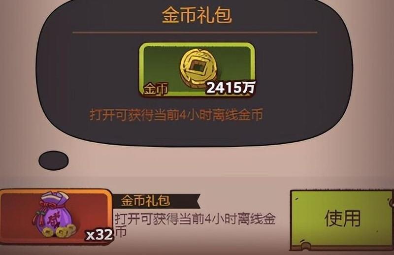 开礼包相当于四小时挂机收益,堪称最快金币获取方式。