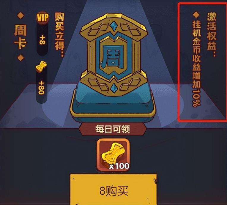 开通周卡后再开启金币礼包更划算,可获得更多的金币奖励。