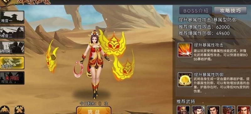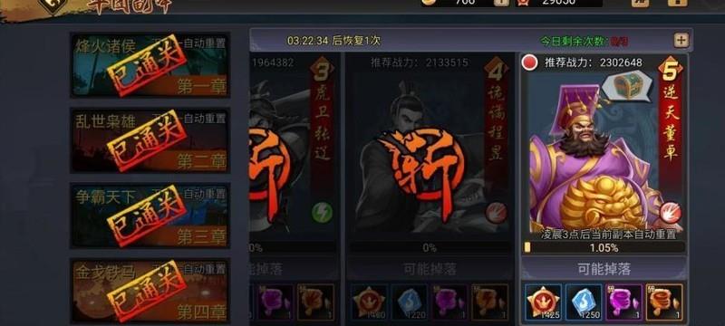 对阵董卓时,若阵容包含蔡文姬,可提升己方10%攻击强度。建议选用电属性武将攻击爆属性的守关主将,伤害输出可达到120%。推荐虎卫张辽与鲁肃轮流主攻输出,因BOSS全程真霸体较难应对,辅助位可选袁绍或程昱提供支援,增强整体作战能力。
