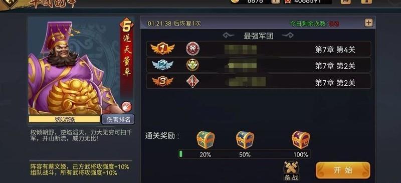 第七章军团副本终于上线了,可惜果服玩家没能同步更新。这次更新给老区的高等级军团带来了新活力,也让新区和战力中等的军团有了新的挑战动力。以前那种资源紧张、步步为营的打法已经不适用了,现在强力军团可以尽情展现实力,体验一场酣畅淋漓的副本征程。根据最近两周的情况来看,不少满编军团已经在周日打到了7-5关卡,说明通关不仅需要个人实力,团队配合和策略执行也至关重要。 经过二十多天的实战总结,第七章的核心通关策略也逐渐明朗。本章难度相比以往高了不少,尤其是最后的首领董太师,不仅体型巨大,机制复杂,攻防属性还特别强,可以说是目前最难对付的BOSS。想要过关,就得合理搭配阵容、掌握技能使用时机,还要加强团队协作。希望大家抓住这次版本的机会,顺利拿下第七章,朝着全章节通关的目标迈进!