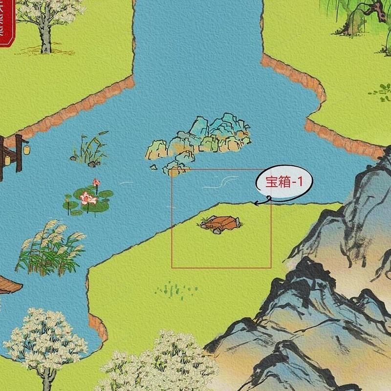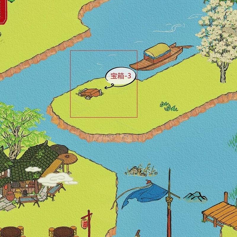 码头后山区域入口处可见宝箱1,内含文徵明碎片十片。
