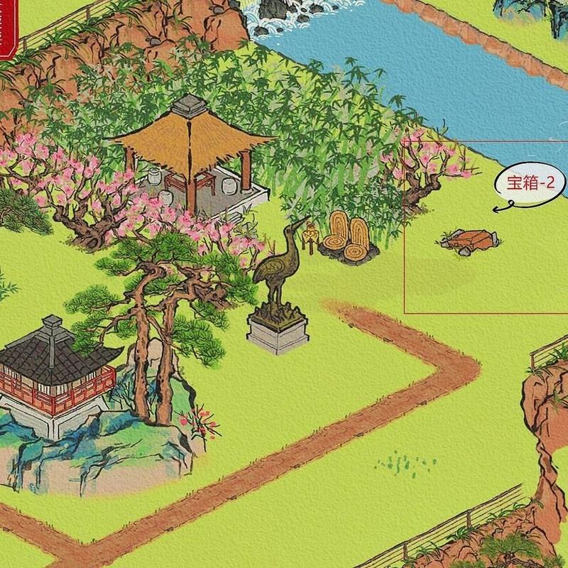 宝箱二位于仙鹤铜像旁,内有三份金画轴,名为玲珑棋局。