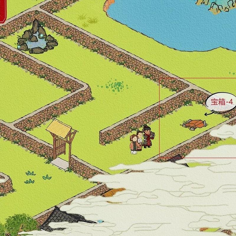 迷雾中抓住小偷获得钥匙,开启宝箱四,得三份金画轴。